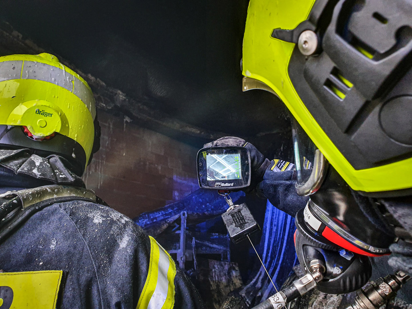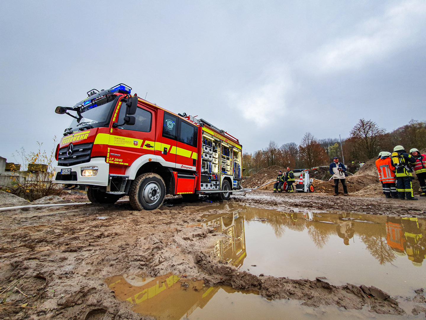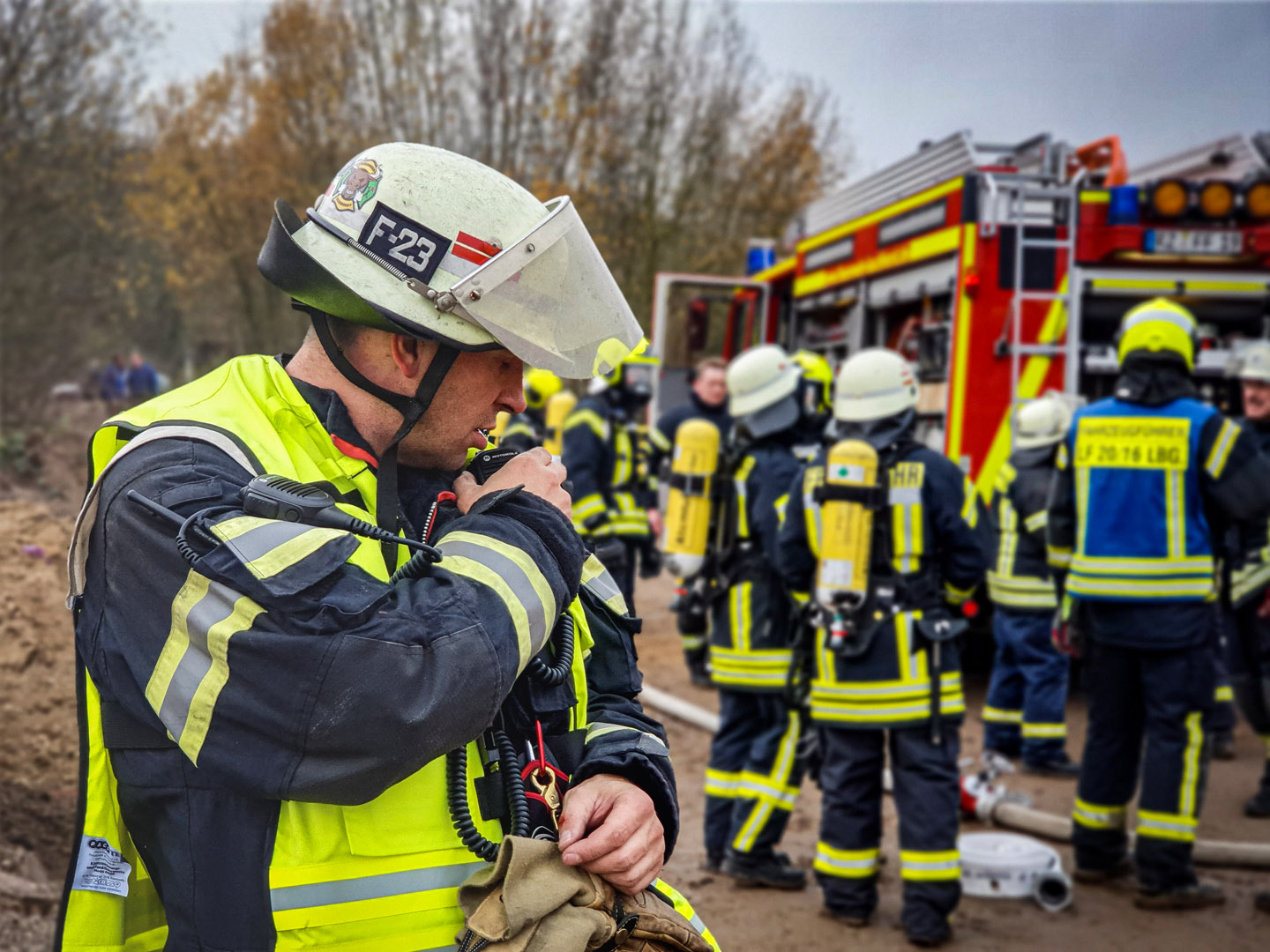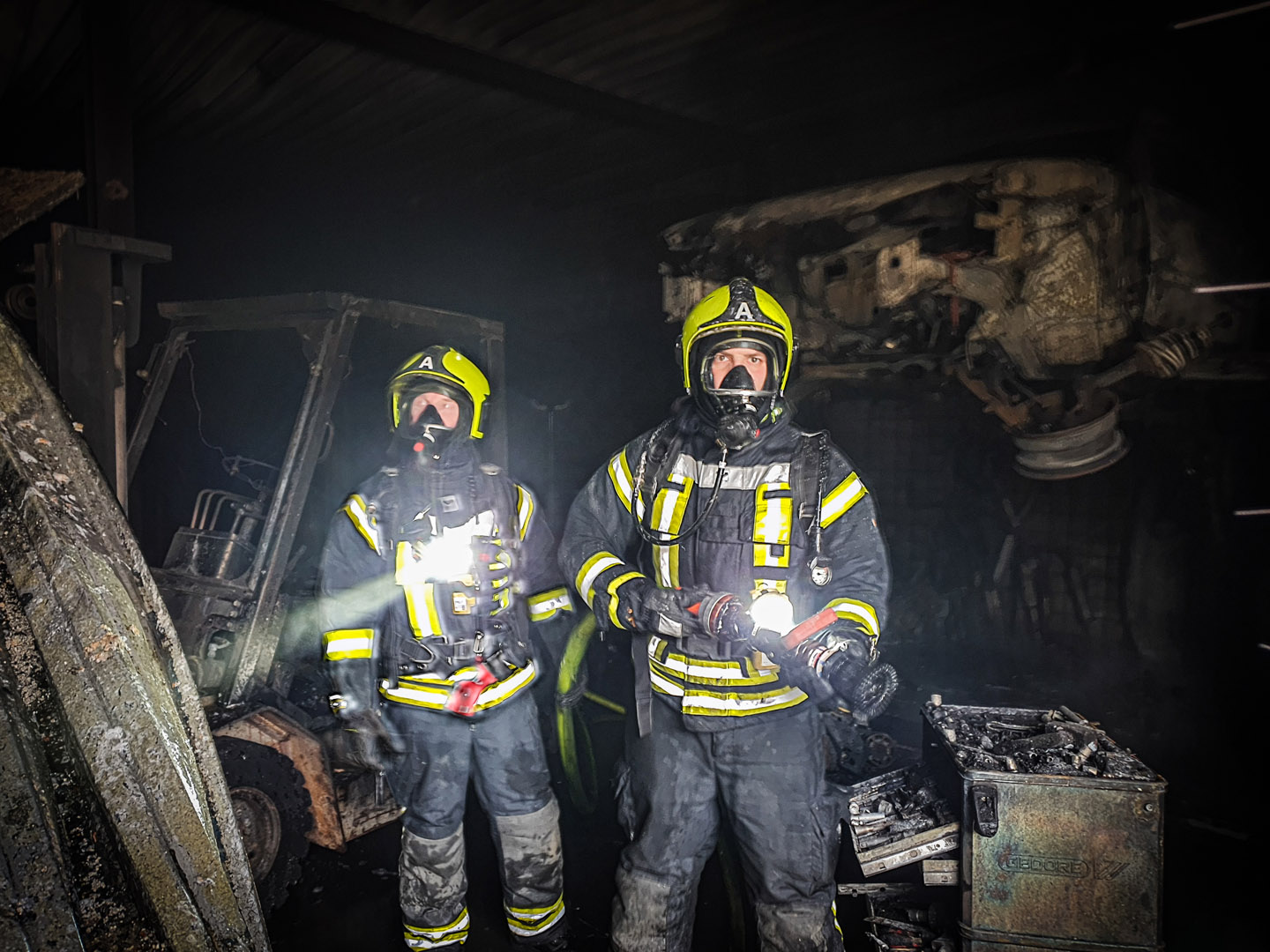 Ein Feuer in einem Buchhorster Gewerbebetrieb sorgte am Dienstagnachmittag für einen Großeinsatz von Feuerwehren. Gegen 13:38 Uhr alarmierte die Leitstelle die Feuerwehren aus Buchhorst und Lauenburg. Ersten Angaben zufolge war es in einem Teil der Halle zur eine Brandausbruch gekommen. Neben zahlreichen Fahrzeugen wird auch Kraftstoff und Wertstoffe in dem riesigen Gebäude gelagert. Nach kurzer Zeit war das LF 16 der Buchhorster Feuerwehr vor Ort, wenig später traf das LF 20 der Lauenburger Wehr ein. Meter hohe Flammen schlugen aus einem offenen Tor empor. – Das Einsatzstichwort wurde auf FEU 2 erhöht und damit die Feuerwehr Schnakenbek zusätzlich alarmiert. Ein Angriffstrupp hatte bereits die Brandbekämpfung mit einem C-Rohr eingeleitet. – Schnell wurde entschlossen, den Wasserwerfer des LF 20 in Betrieb zu nehmen. Mit 1600l / Minute und beigemengtem Schaummittel waren die großen Flammen innerhalb von Sekunden gelöscht. Gezielt konnte jetzt der erste Angriffstrupp gegen die Flammen vorgehen. Einsatzleiter Florian Lüttge erkundete die Lage rund um das riesige Gebäude und bildete gemeinsam mit Lauenburgs Wehrführer Lars Heuer Brandabschnitte. Weitere eintreffende Fahrzeuge wurden an strategisch wichtigen Punkten aufgestellt und übernahmen Löscharbeiten. Das Feuer hatte sich auch in der Dachkonstruktion ausgebreitet. Um genügend Atemschutzgeräteträger zur Verfügung zu haben, wurde auch die Feuerwehr Hohnstorf aus Niedersachsen angefordert, währenddessen wurde auch das Alarmstichwort noch einmal auf FEU 3 erhöht. Über mehrere Stunden war die Feuerwehr mit den Löscharbeiten beschäftigt. Über die Drehleiter mussten Teile der Dachhaut geöffnet werden damit Glutnester abgelöscht werden konnten. Bis in die Abendstunden waren die Kräfte im Einsatz. Auch in der Nacht kam die Feuerwehr erneut zur Brandwache, hierbei unterstützte auch die Lauenburger Drehleiter.