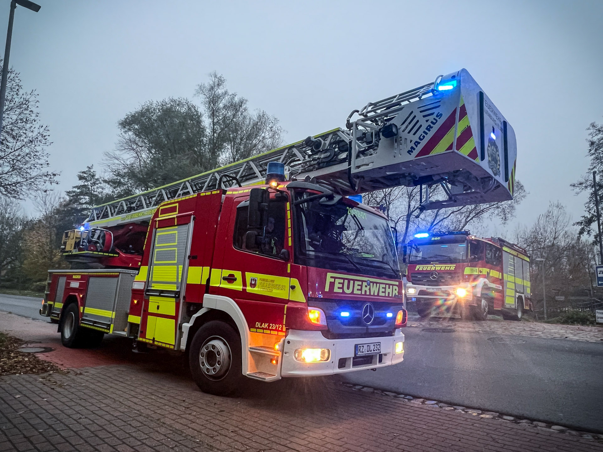 Von der B5 aus hatte ein Autofahrer durch die Bäume Richtung Elbkamp einen Feuerschein gesehen und die Feuerwehr alarmiert. Nach ausgiebiger Erkundung konnte kein Feuer