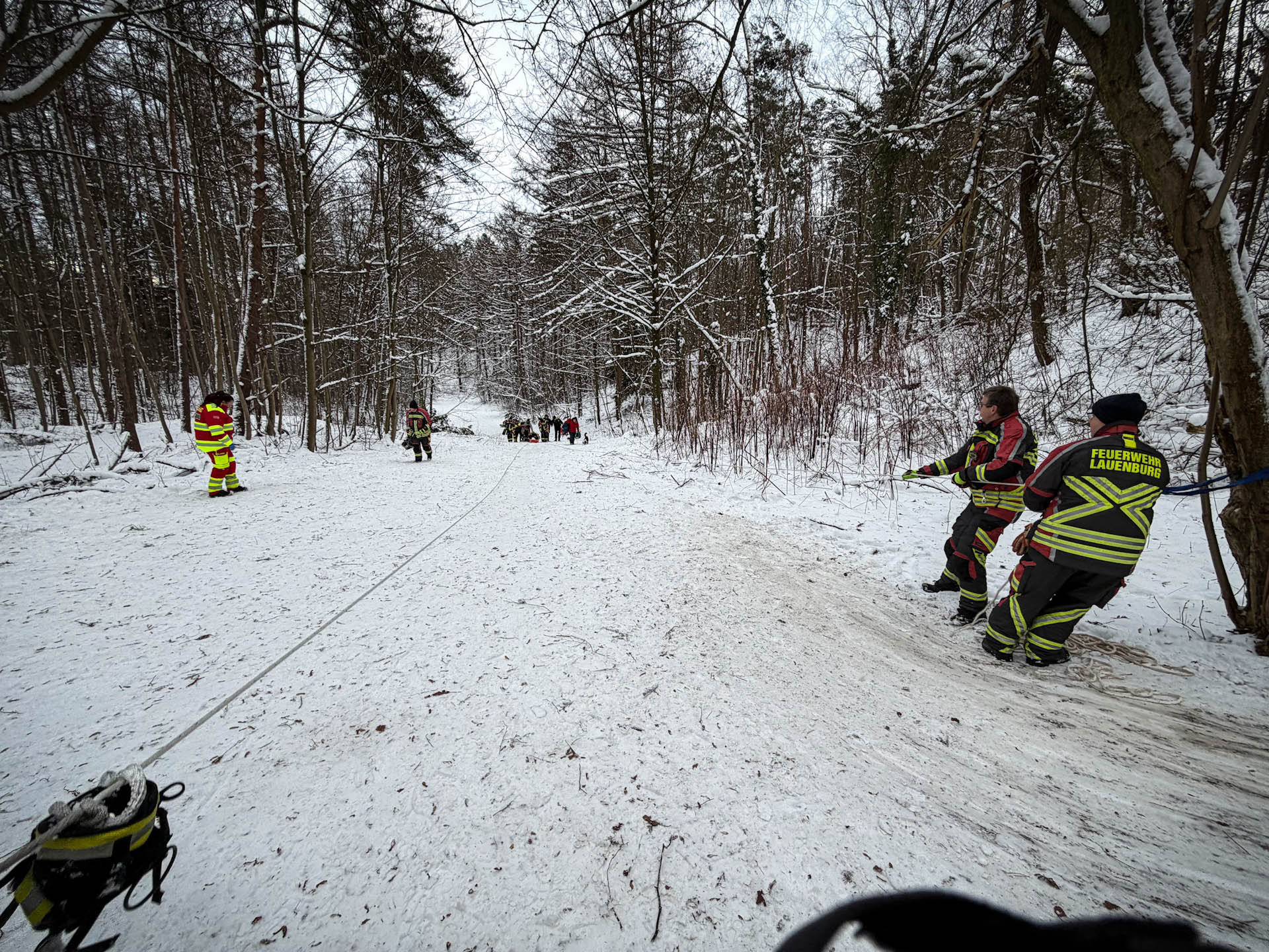 Am Nachmittag rückten KdoW und HLF zum Rodelberg aus. Eine Person stürzte beim Schlittenfahren und verletzte sich dabei. Die Feuerwehr unterstützte mit der Schleifkorbtrage in