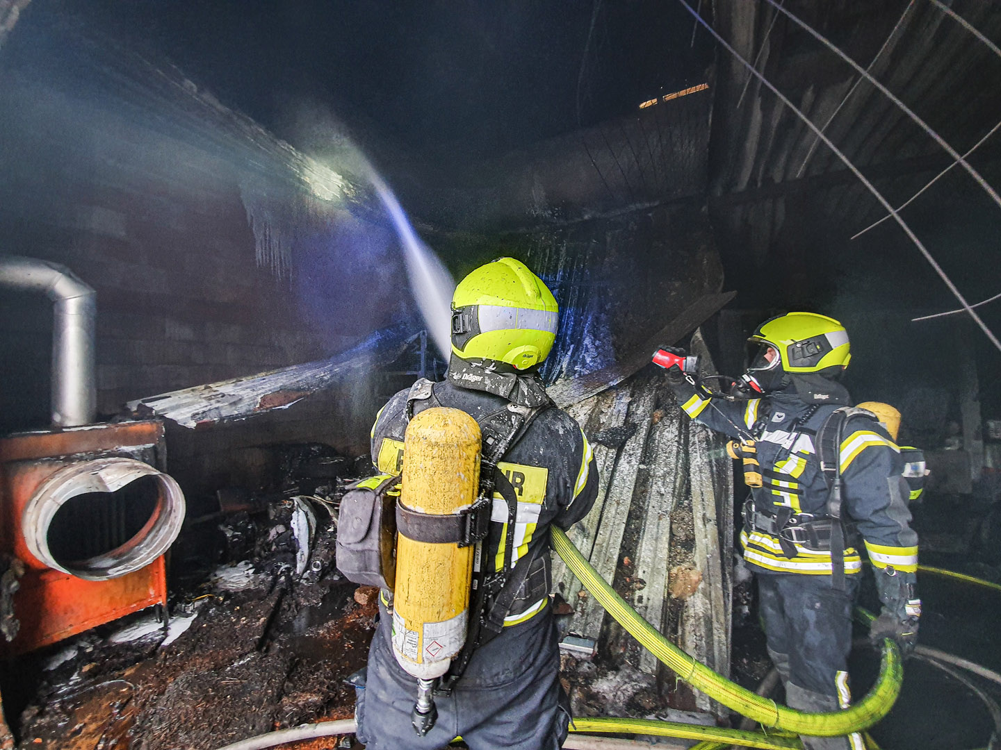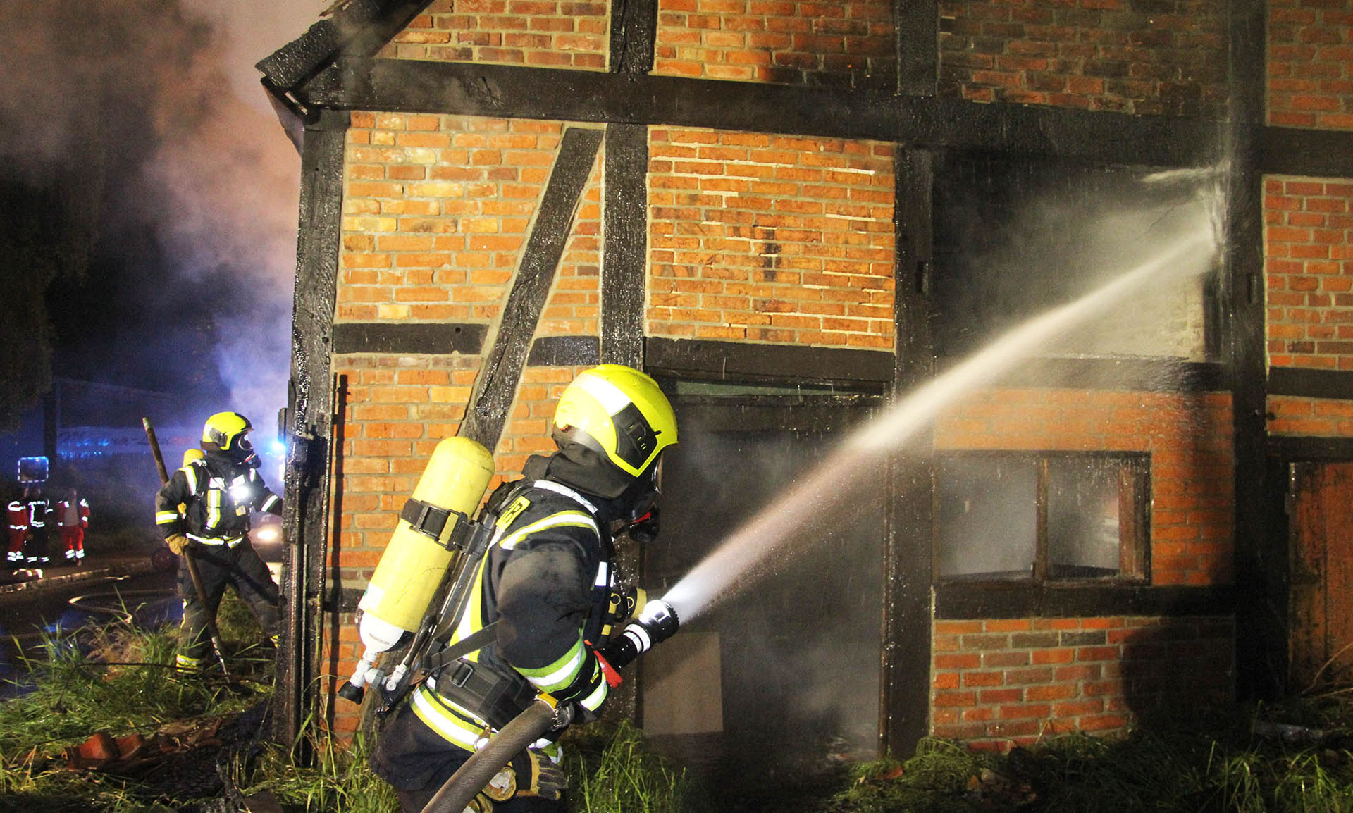 Der Inbegriff der Feuerwehr sind die Atemschutzgeräteträger. Die Frauen und Männer, die ins Feuer oder in atemgefährdende Bereiche gehen, durchlaufen eine spezielle Ausbildung. Nach der Grundausbildung und den weiterführenden Lehrgängen, Truppmann und Sprechfunk, benötigen die Kräfte eine 24 Stunden umfassende Ausbildung zum Atemschutzgeräteträger. Zuvor ist die gesundheitliche Untersuchung bei einem Arbeitsmediziner zwingend erforderlich. Die zumeist körperlich anstrengende Arbeit fordert die Fitness der Frauen und Männer immer wieder auf ein Neues heraus. Das rund 10 kg schwere Atemschutzgerät auf dem Rücken schränkt nicht nur die Beweglichkeit ein, sondern sorgt auch für zusätzliche Anstrengungen. In der Flasche von dem Atemschutzgerät befindet sich komprimierte Atemluft, diese Frischluft wird über eine Schlauchleitung in die Atemschutzmaske geführt. Umluftunabhängig können so Arbeiten in dichtem Brandrauch oder in gefährlichen Gasen durchgeführt werden. Um die Belastungen im Einsatz auszustehen und den Umgang mit dem komplexen System zu vertiefen, treffen sich die Atemschutzgeräteträger regelmäßig, um den Einsatz zu trainieren. Vom Einsetzen eines Rauchschutzvorhang, um eine Rauchgrenze an einer Wohnungstür zu setzen, bis zum Öffnen einer Wohnungstür mittels Brechwerkzeug wird alles geprobt. Der richtige Umgang mit dem Hohlstrahlrohr ist genauso wichtig wie das Verhalten bei einem Atemschutznotfall.