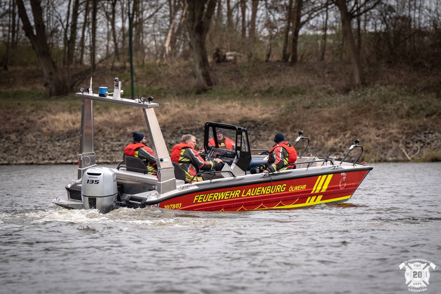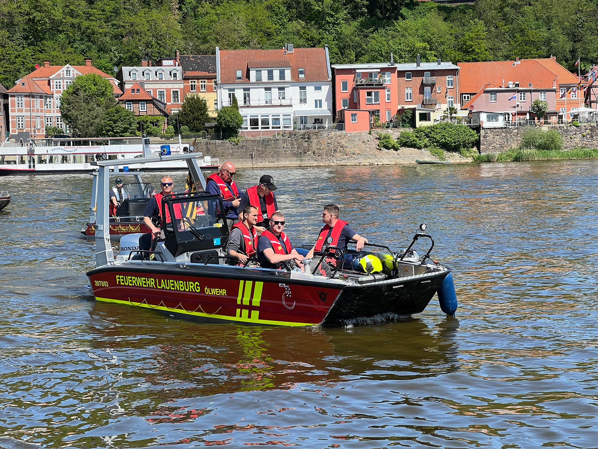 Direkt an der Elbe gelegen, sind Boote bei der Lauenburger Feuerwehr nicht wegzudenken. Deshalb stehen der Wehr drei Einsatzboote zur Verfügung, wobei das Arbeitsboot „Elbe 1“, sowie das Mehrzweckboot „Ölwehr“ (MZB) vom Kreis für die Durchführung der Ölwehr bereitgestellt werden. Ein weiteres Rettungsboot (RTB) wurde von der Stadt Lauenburg in Dienst gestellt, um diverse Einsatzlagen auf der Elbe schnell zu erreichen. Im Jahr 2025 sind zu den bestehenden Bootsführern 11 neue Bootsführer von der Wehr ausgebildet worden, dadurch steht der Wehr nun eine schlagkräftige Truppe an Bootsführern für Einsätze zur Verfügung. Verschiedene Szenarien erwarten die Einsatzkräfte, so ist zum Beispiel die Eingrenzung von Gewässerverunreinigungen vertraglich an die Feuerwehr Lauenburg durch den Kreis Herzogtum Lauenburg vergeben. Mit geeigneten Mitteln, wie Ölsperren oder Absorberschläuchen werden die Ausbreitungen eingedämmt. Um die Technik auch Landesübergreifend einzusetzen, finden auch Übungen mit den Nachbargemeinden aus Niedersachsen statt. Doch auch zur Brandbekämpfung können die Boote eingesetzt werden. Auf dem Neuesten der 3 Boote (MZB) ist eigens eine Befestigung für eine Tragkraftspritze verlastet. Über einen Löschmonitor, kann das über den Rumpf des Bootes angesaugte Wasser direkt abgeben werden. Auch zur Unterstützung des Rettungsdienstes werden die Boote eingesetzt, hierbei ist das unwegsame Gelände zwischen Lauenburg und Grünhof das Haupteinsatzgebiet unserer Wehr. Der Transport von verletzten Wanderern am steilen Elbhang zählt immer wieder zu den Einsätzen der Rettungsboote. Dabei wird der Rettungsdienst beim Abtransport über das Wasser zu einer geeigneten Übergabestelle transportiert. Bei den Bootsdiensten trainieren die Bootsführer diese Szenarien, damit im Einsatzfall die Techniken beim Anfahren von flachen und schlecht zugänglichen Anlegestellen bekannt sind und diese Manöver sicher durchgeführt werden können.